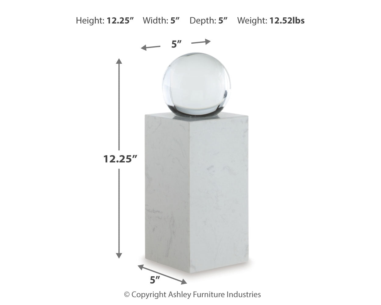 | Sculpture | 5" | 5" | 12" |